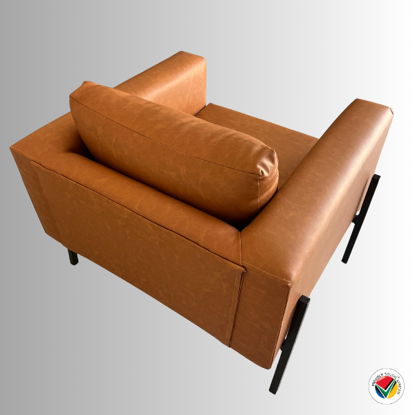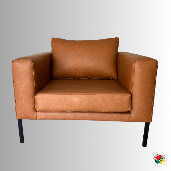 Its structured box silhouette is perfectly balanced by a sleek black metal frame, providing both durability and minimalist appeal. With deep cushioning and generous armrests, it’s the ideal statement piece for modern lounges, reading corners, or executive spaces.