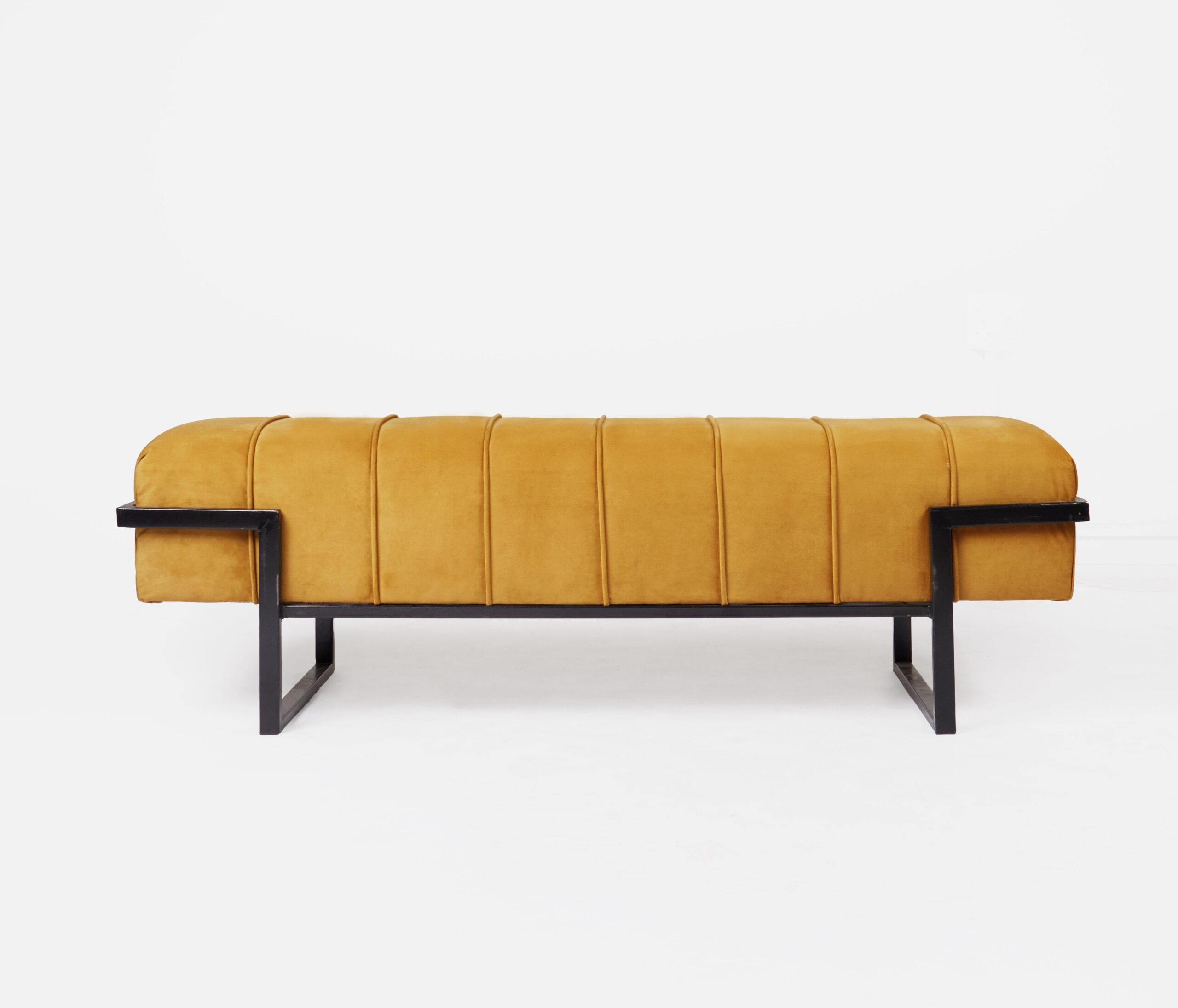 The Rectangular Ottoman is a statement piece that combines comfort, function, and contemporary style. Upholstered in rich mustard velvet, it offers a plush seating or footrest option while adding a vibrant pop of colour to any room.