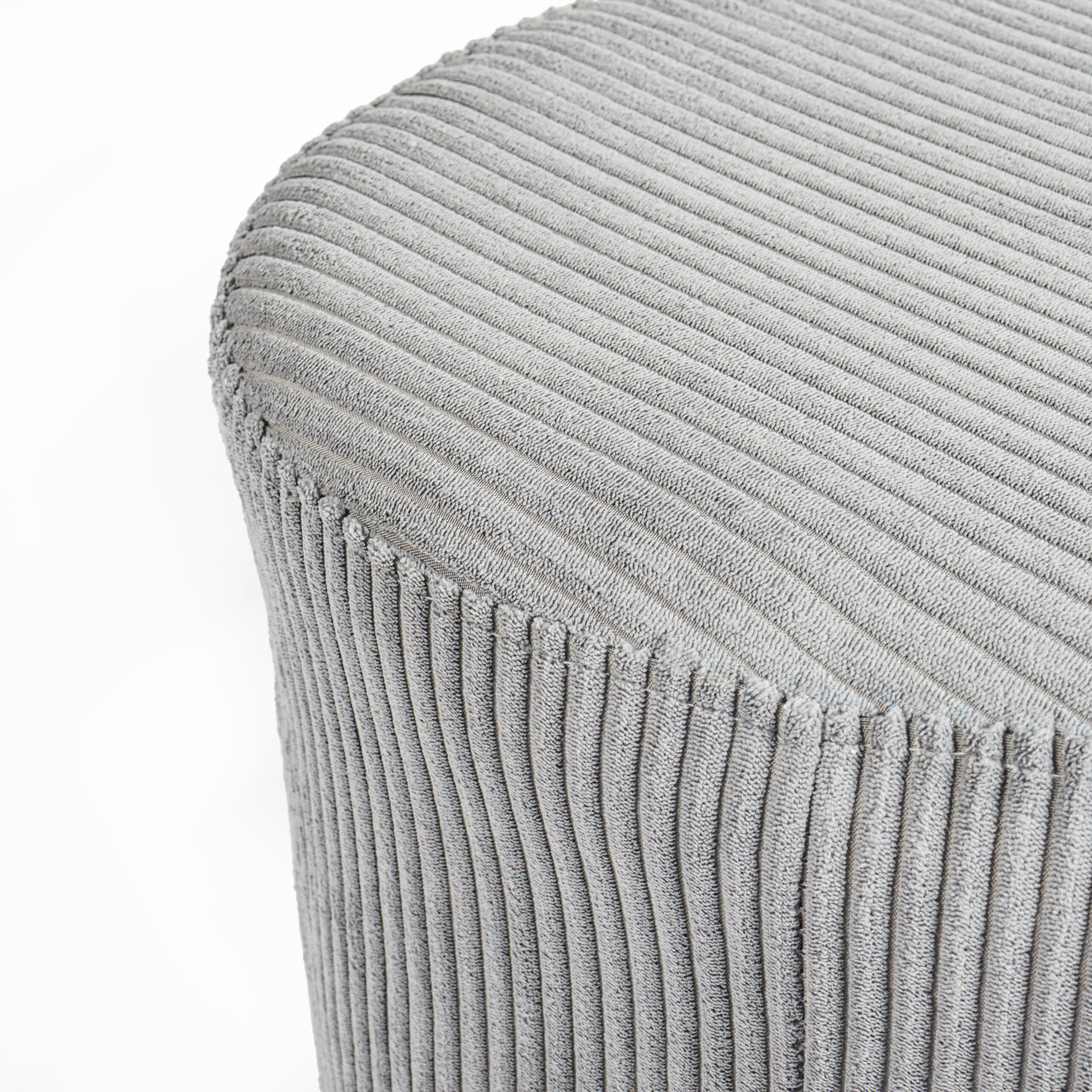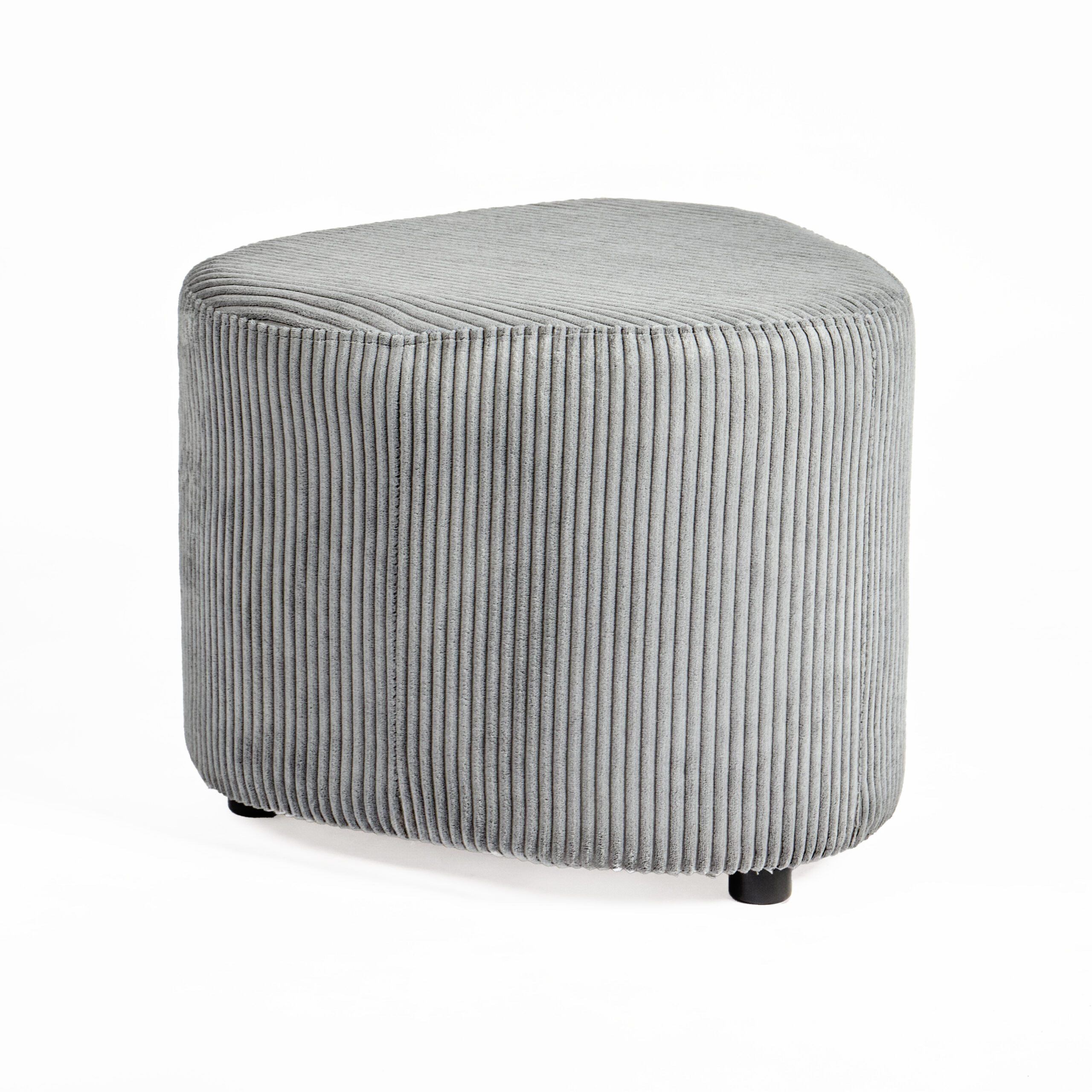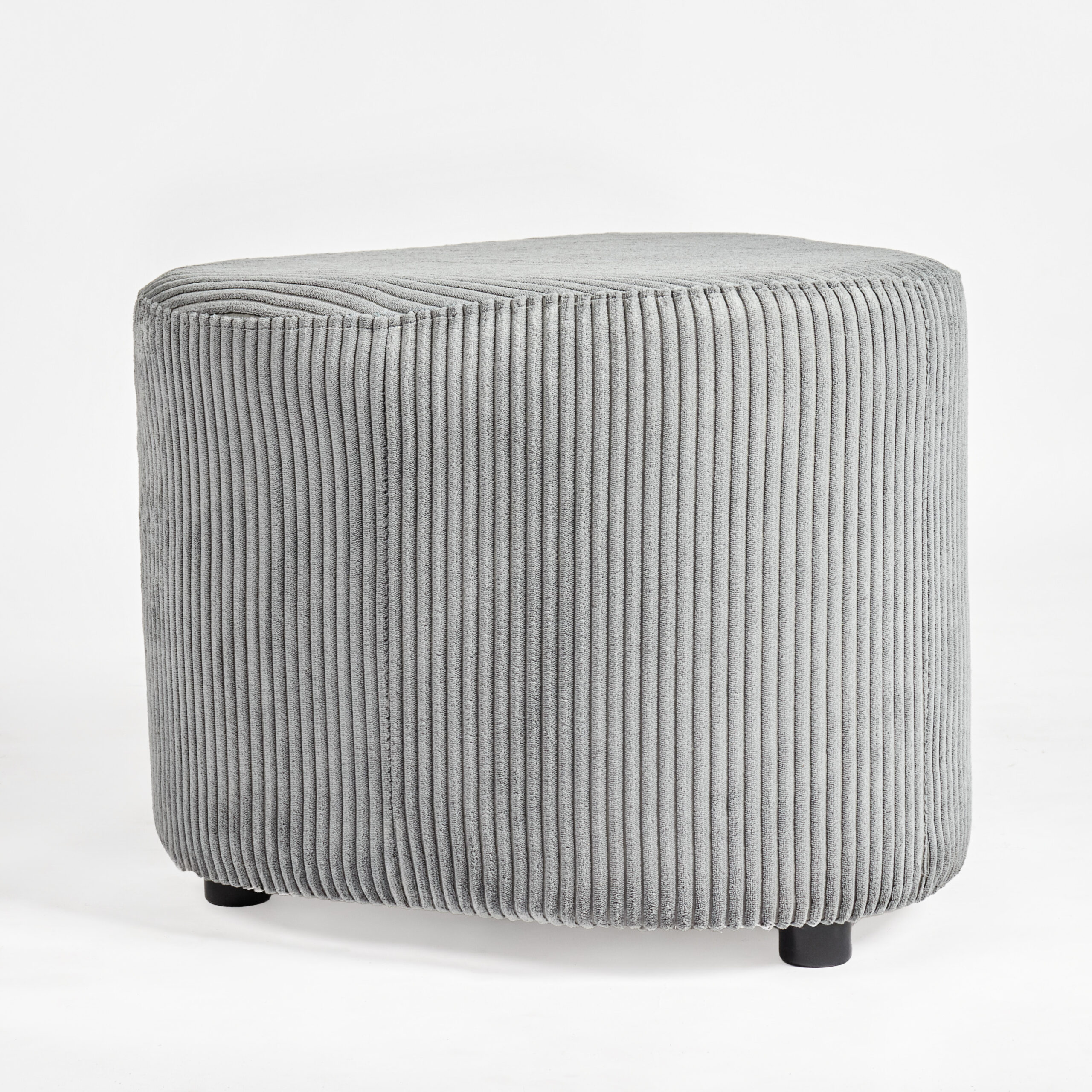 The Trio Phathu Ottoman blends modern charm with everyday functionality. Upholstered in soft grey corduroy with a subtle ribbed texture, it adds a layer of comfort and style to any room. Its unique geometric silhouette makes it both eye-catching and practical, serving as extra seating, a footrest, or a stylish accent piece.