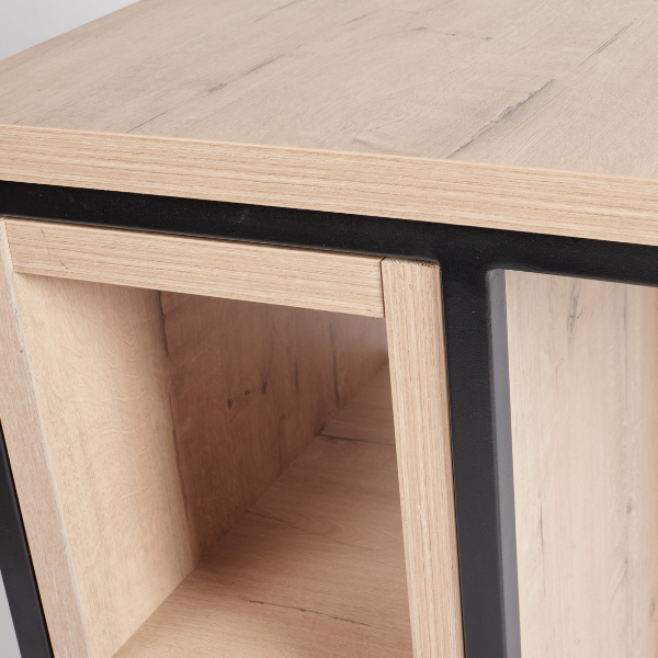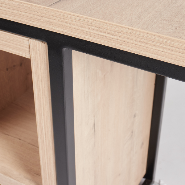 Material: Natural wood surface with durable steel frame